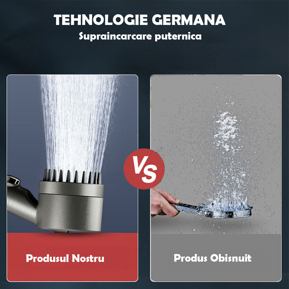Presiune Optimizată și Economie de Apă: Datorită tehnologiei micro-duze, presiunea apei este crescută, oferind un jet puternic și revigorant, în timp ce economisește până la 30% din consumul de apă.