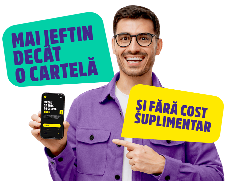 Descoperă abonamentele YOXO, soluția 100% digitală și flexibilă pentru minute, SMS-uri și net, la prețuri începând de la doar 9 lei/lună! Funcționând în rețeaua Orange cu viteze 4G+ și 5G+, YOXO oferă minute și SMS-uri naționale nelimitate + net adaptat nevoilor tale, fără perioadă contractuală fixă. Abonamentul se activează pe 30 de zile, se reînnoiește automat lunar și poate fi anulat sau modificat oricând din aplicația mobilă – mai ieftin și mai convenabil decât o cartelă prepay clasică!